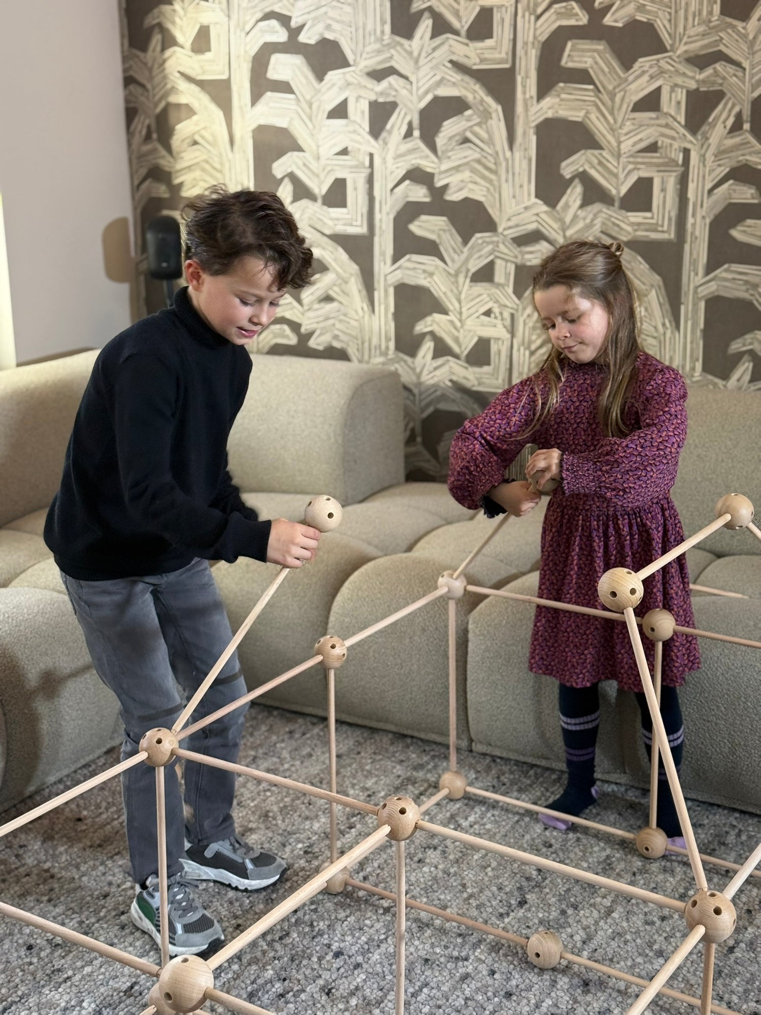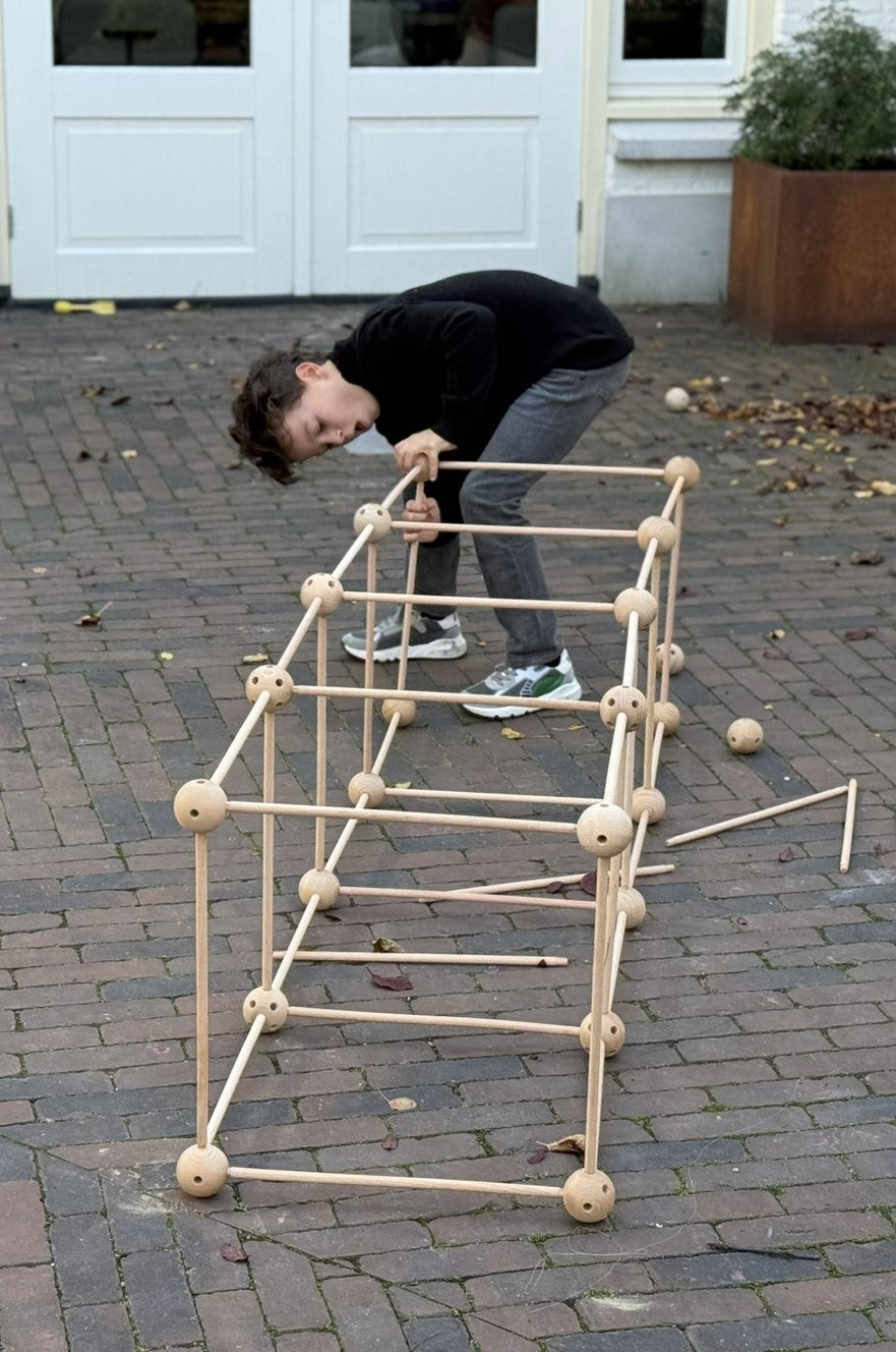 Met onze houten stokken-en-ballen sets bouwen kinderen alles wat ze bedenken: van kastelen tot raketten. Geen schermen, geen handleiding – alleen creativiteit en spelplezier.